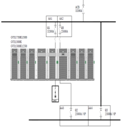 如圖示并機(jī)物理結(jié)構(gòu)2,為6臺(tái)250KW的功率柜+1500KW靜態(tài)旁路+輸入輸出I/O柜通過(guò)外部主配電柜和主電纜進(jìn)行并聯(lián),總共需要4個(gè)配電柜和少量電纜。每臺(tái)250KW UPS功率柜內(nèi)部集成了自動(dòng)控制的接觸器和熔斷器,內(nèi)部還集成和預(yù)制了主輸入、旁路輸入、主輸出和電池母線的銅排背板與I/O柜連接,每臺(tái)UPS功率柜不再需要外配四把分?jǐn)嗦菲骱退慕M分電纜。
