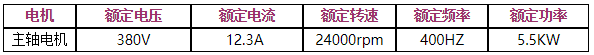(4)調(diào)速范圍在0~24000r/min,換算變頻器的運(yùn)行頻率為0~400Hz(二級(jí)高速電機(jī));